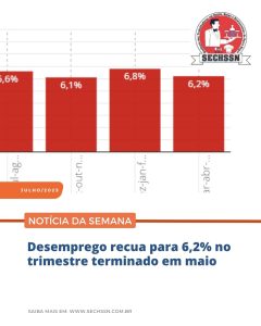 A taxa de desemprego no Brasil recuou para 6,2% no trimestre encerrado em maio de 2025, segundo dados divulgados pela ...